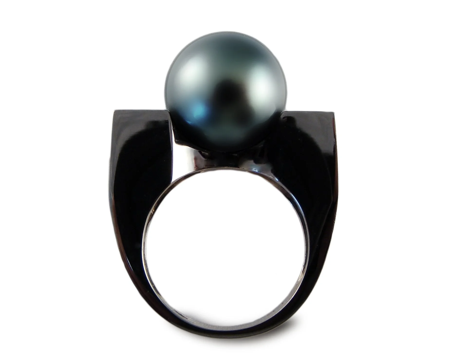 TAHITIAN PEARL SET IN BLACK GOLD RING